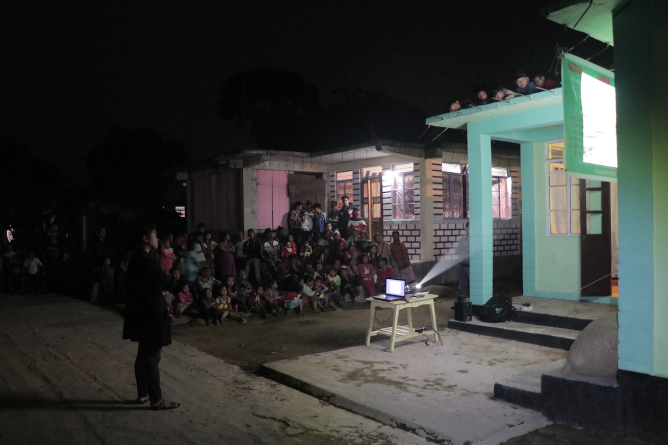 As part of the community awareness program, he is screening a series of wildlife and conservation documentaries in the five villages of Hima Malai Sohmat, with the support of a small team of conservationists from the Wildlife Conservation Society (WCS), who are currently in the area to survey the gibbon population in the community forest.