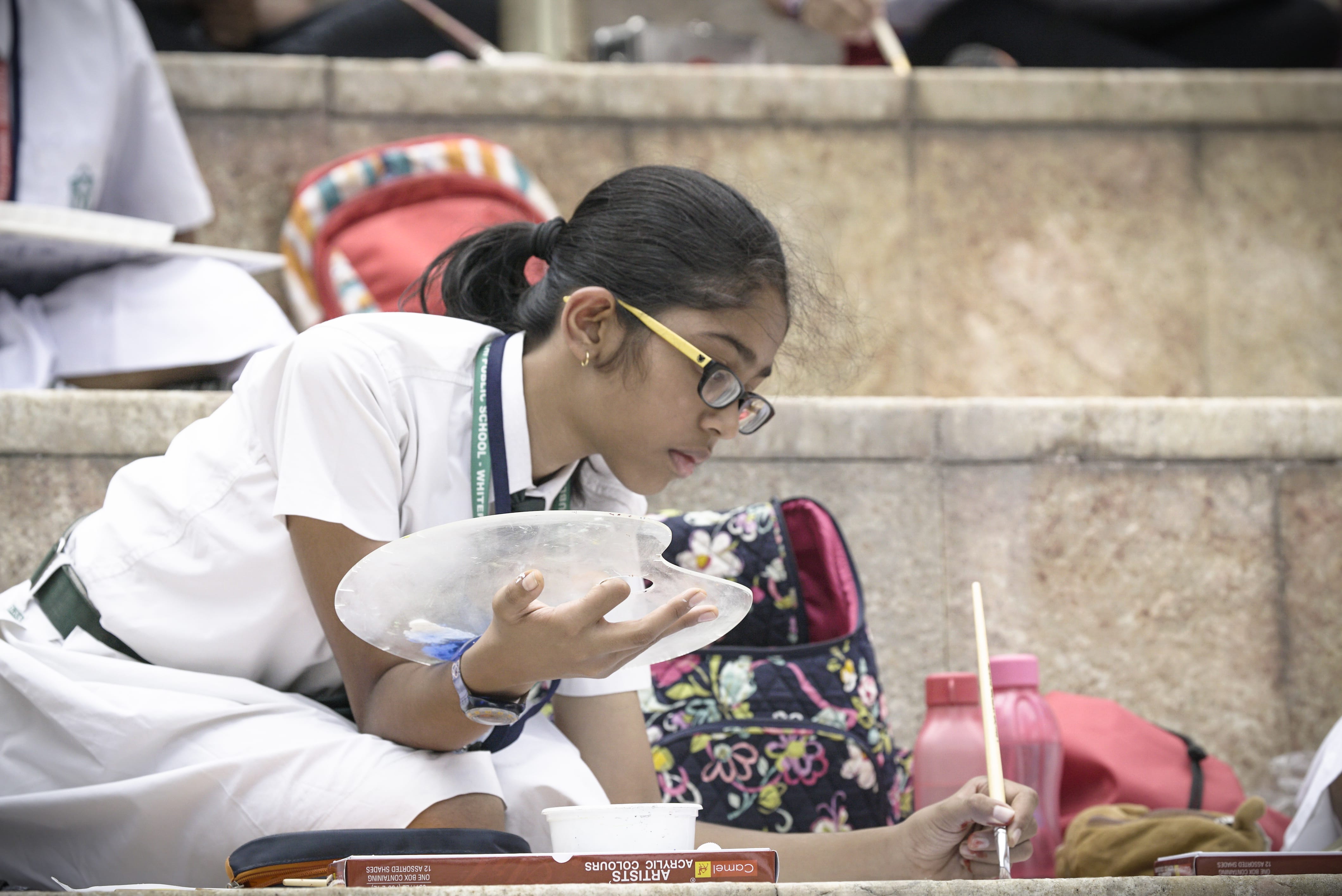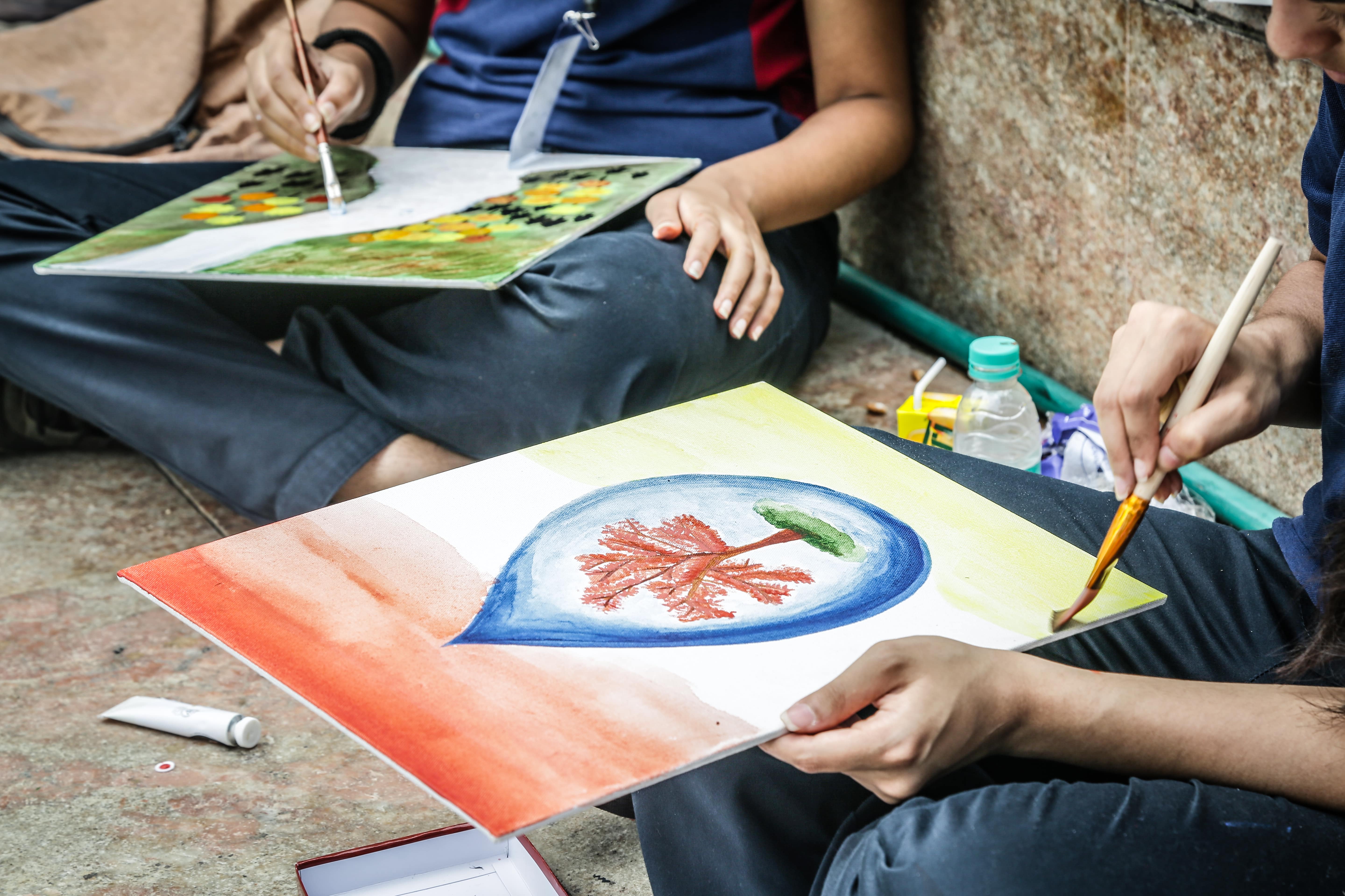 The budding artists sat comfortably at the outdoor amphitheatre of UB City on that pleasant August day and channelised their imaginations onto paper, armed with supplies – canvas, paints and palettes – provided by RoundGlass Samsara.