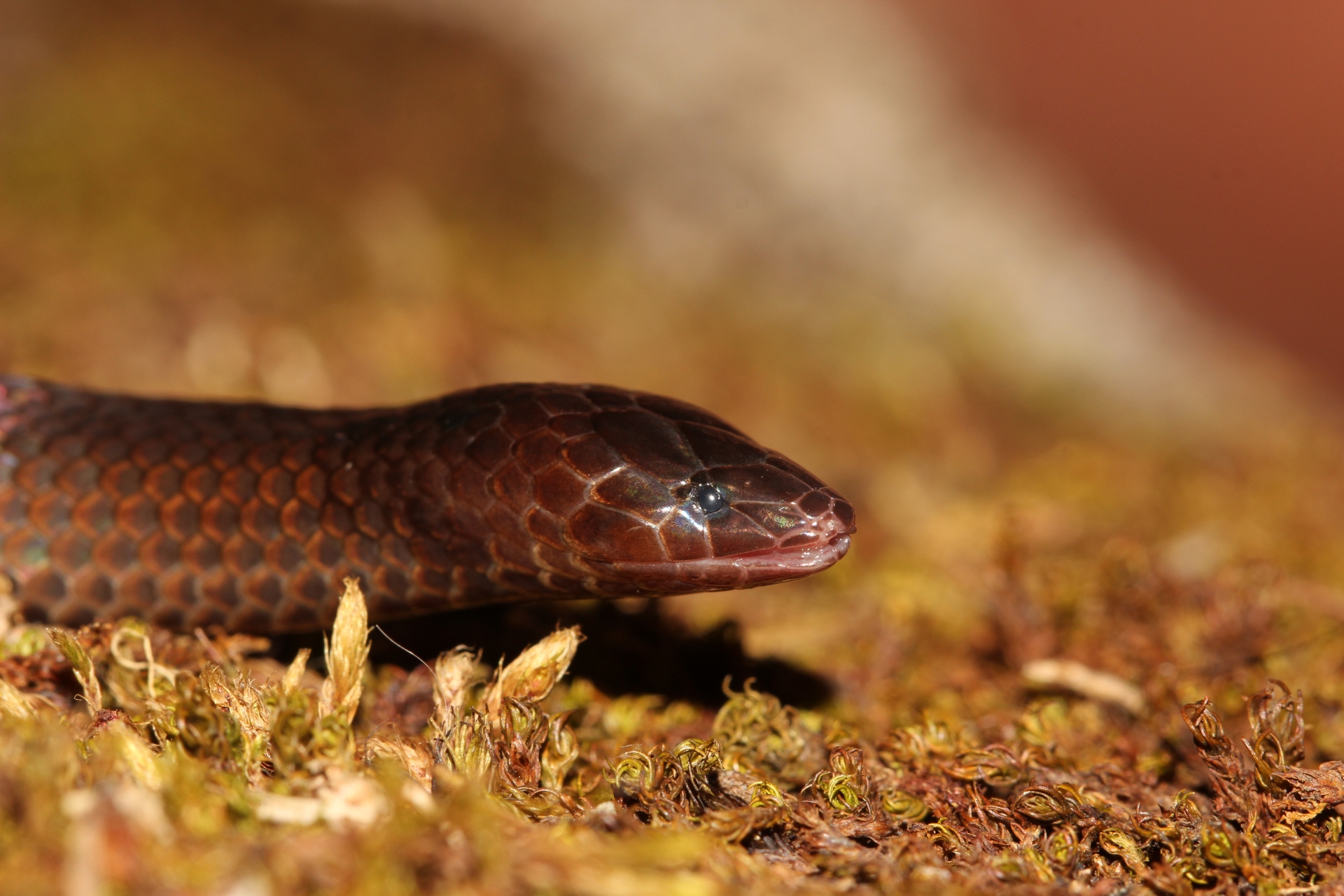 (Left) The large-scaled forest lizard is an abundantly found tree-dwelling reptile that feeds on insects. It is easily recognised by and named after the prominent, striking scales on its back. Photo: Nikhil Gaitonde (Right) Xylophis indicus is a species of wood snake seen in Meghamalai. The shy, brown snake is often hidden, and perfectly camouflaged — under logs, rocks and fallen tree foliage. Photo: Akshay Khandekar