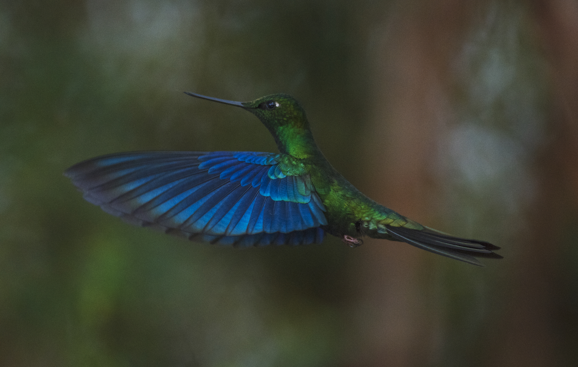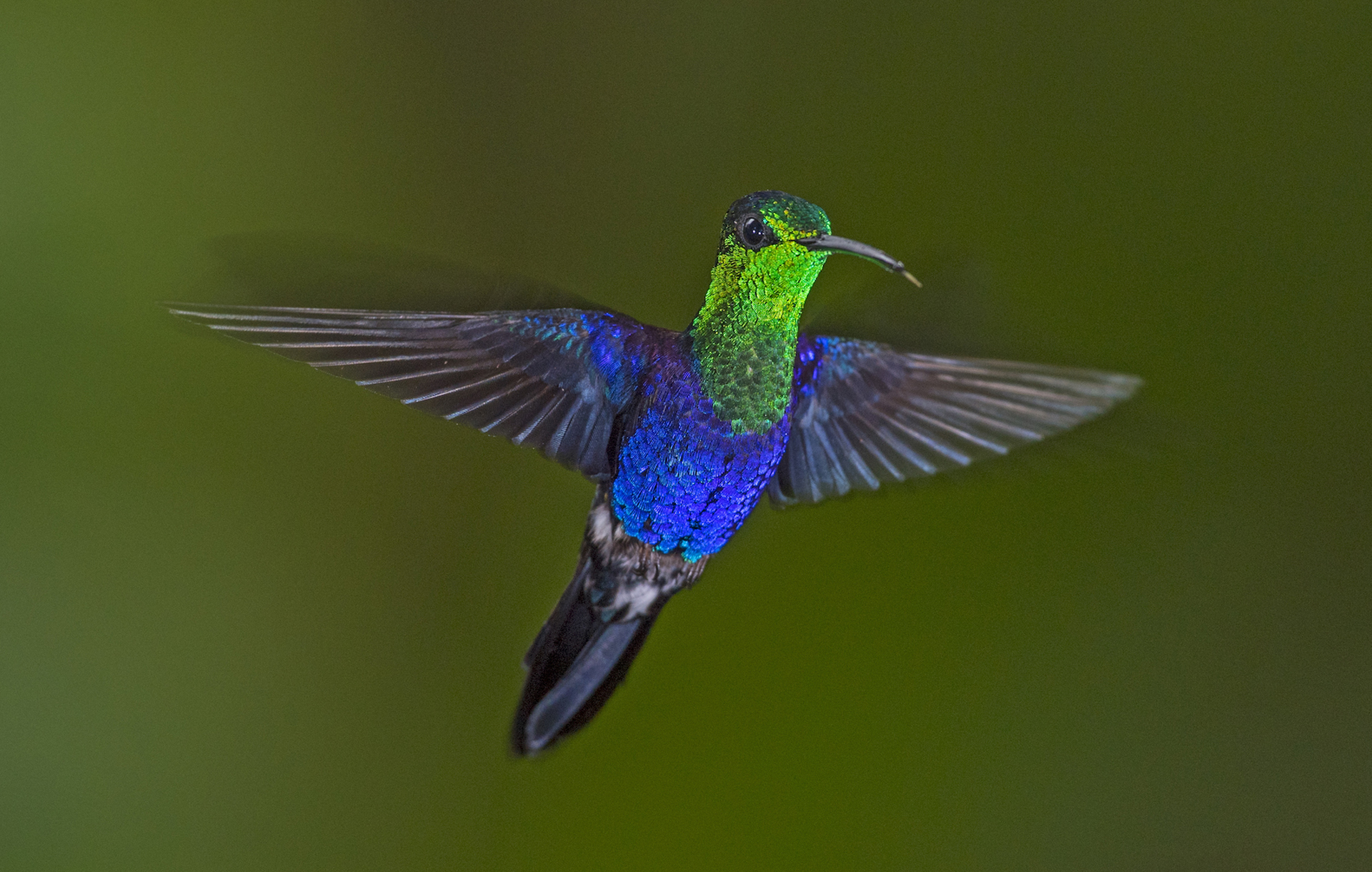 Another resident of Chocó, is the booted racquet-tail, distinguished by its unusual tail feathers. Hummingbirds are accomplished flyers, capable of both speed and dexterity. They have the fastest wingbeat in the bird kingdom, with some birds flapping their wings over 1,000 times per minute. This speed is also what inspired their title: They are named for the humming sound their wings make when they are in flight.