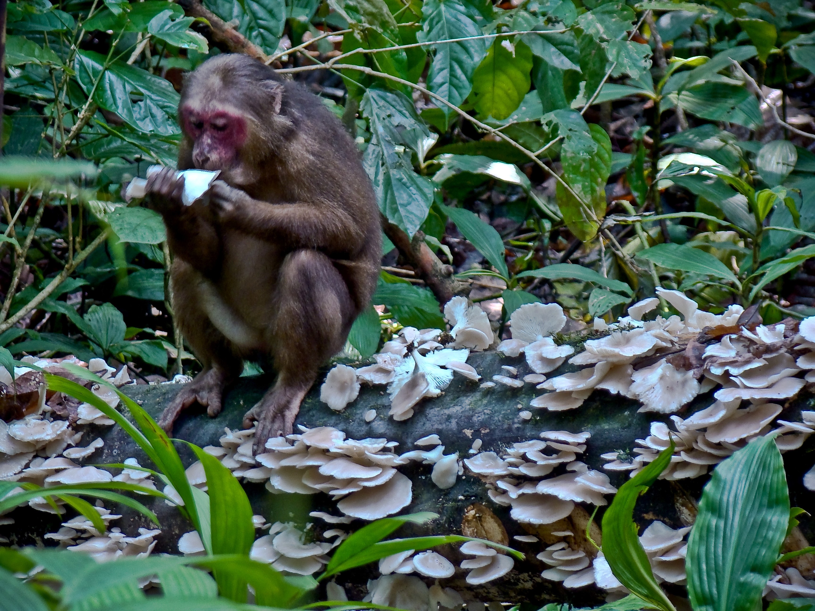 Foraging is a crucial skill for stump-tailed macaques and troops spend most of their day scouring the forest floor for fruit, leaves, flowers, even mushrooms. Unlike other monkeys — with long tails that help maintain balance — these primates are more comfortable at ground level, rather than up in the trees. Photo (above): Udayan Borthakur, Photo (below): Narayan Sharma