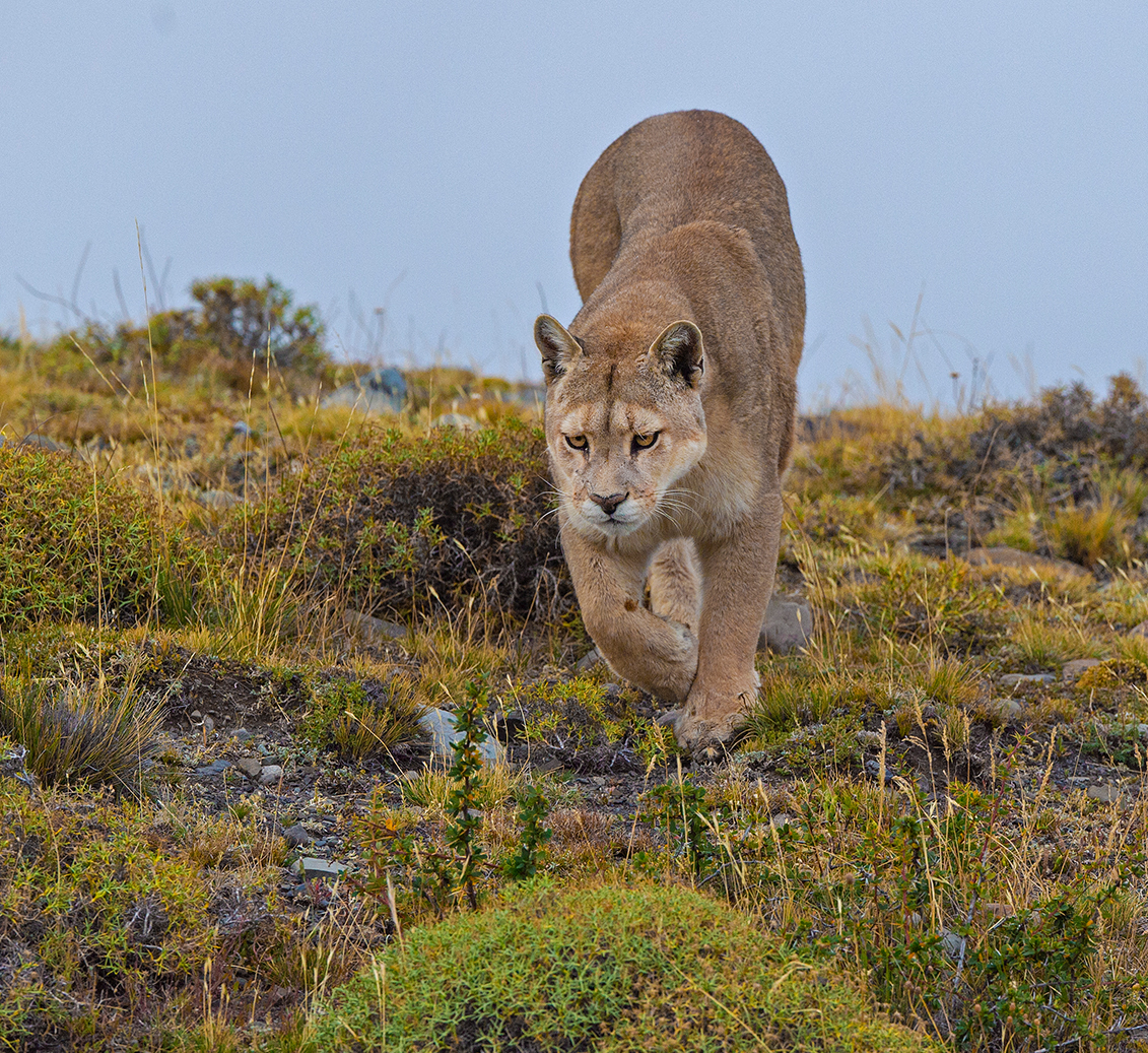 Solitary hunters, the pumas of Torres del Paine are among the largest seen in South America. This particular puma was big, probably a male, and very shy. We’d spotted its kill the previous night and came back in the morning to see if we could track it.