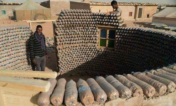 In addition to repurposing waste plastic, the campaign is providing humanitarian relief to the Sahrawi refugee camps in the Algerian desert. Tateh Lehbib Braica, a 27-year-old engineer known to locals as the “crazy bottle guy”, first built a house for his grandmother using 6,000 plastic bottles filled with sand and straw. Soon after, he received a grant from the UNHCR to construct 25 homes in other Sahrawi refugee camps using this method, to benefit other Algerian refugees in the province of Tindouf.
